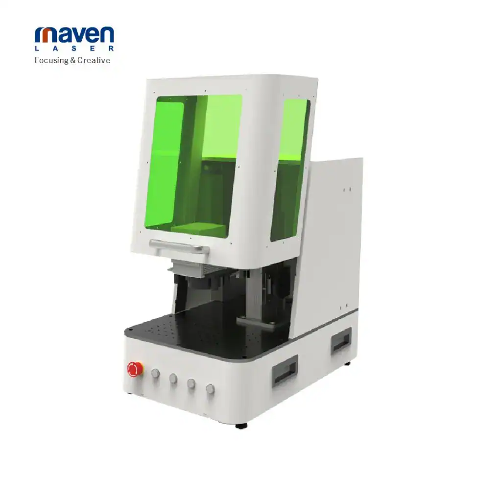 A Maven “Enclosed Portable Fiber Laser Cutting Machine” egy kompakt méretű, teljesen zárt munkatérrel rendelkező fiber lézeres vágó- és gravírozógép, amely elsősorban ékszeripari és nemesfém‑feldolgozási alkalmazásokhoz készült. A burkolat védelmet biztosít a szikrák, forgácsok és fény kibocsátás ellen, miközben a kezelő biztonságosan tud dolgozni.